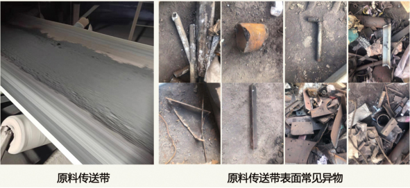 皮帶輸送物料的異物一般是物料本身摻雜,運輸過程摻雜、皮帶機(jī)配件掉落等等。異物可導(dǎo)致物料質(zhì)量降低、皮帶磨損、皮帶撕裂等后果。為提高物料純度,保障皮帶安全,需對皮帶運輸物料中的異物進(jìn)行檢測。